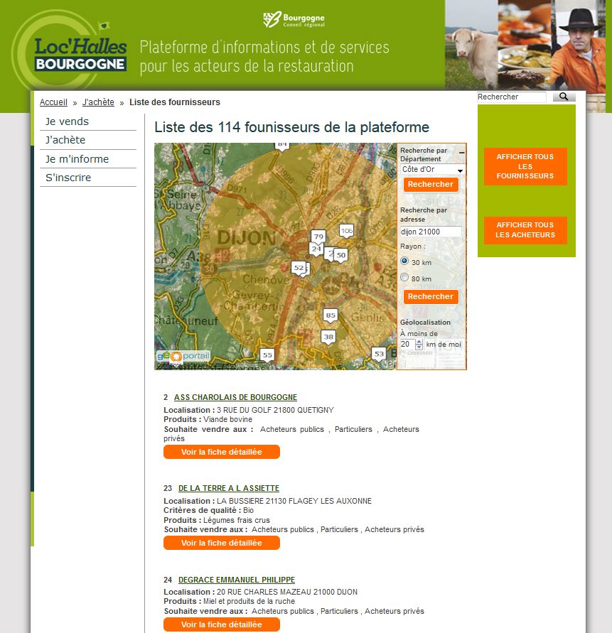 Loc'Halles est une plateforme d'information et de services qui facilite la mise en relation entre les acheteurs et producteurs de produits alimentaires régionaux.